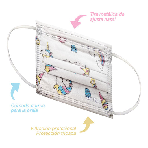 100pz Cubrebocas Tricapa Infantil Niña Mayfield Unicornio Unicornio