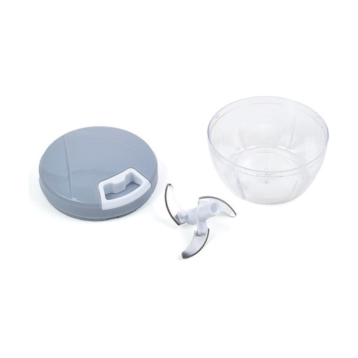 Ver todos los detallesTriturador de alimentos con cuerda manual, recipiente de plástico, tapa enroscable y aspa de acero inoxidable. Presentación: caja en color blanco.