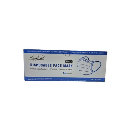 Cubreboca Tricapa De Polipropileno Mayfield 50 Pz Negro Liso